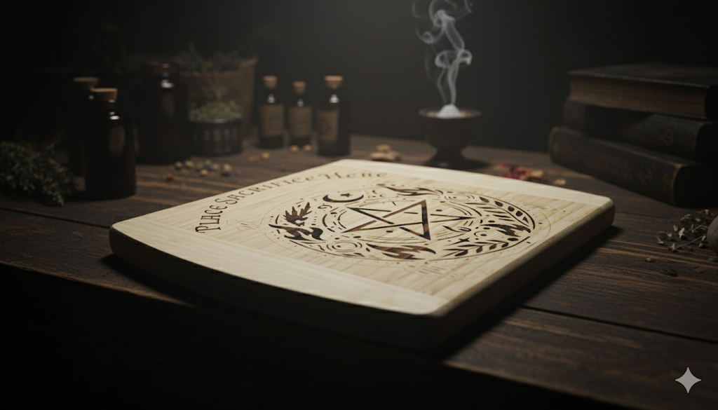 "Bless This Food" Engraved Bamboo Board - A Wiccan Food Blessing