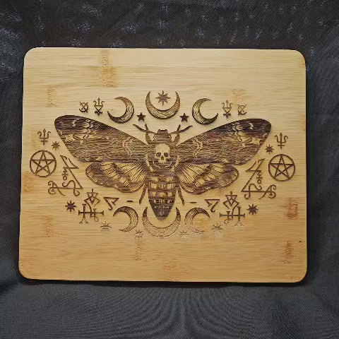 Death’s Head Moth & Moon Phases Bamboo Board | Altar & Kitchen Tool