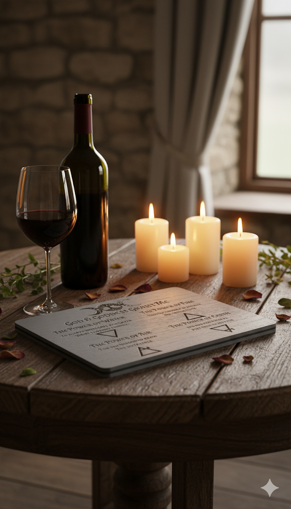 Connect with the divine and the power of the four elements with this beautifully engraved God & Goddess Altar Plaque, which also conveniently doubles as a unique Pagan Placemat. This versatile piece is more than just decorative; it's a powerful tool for prayer, meditation, spiritual practice, and even enhancing your sacred meal times.