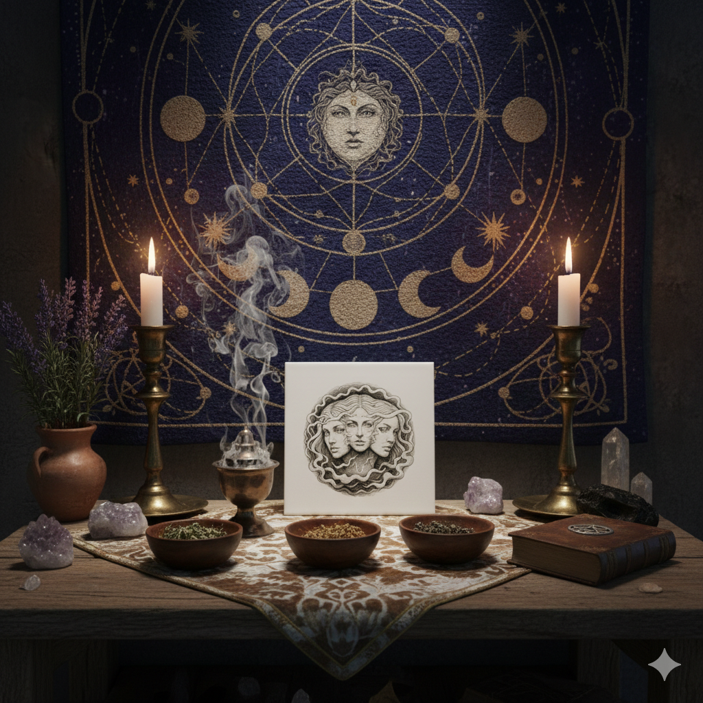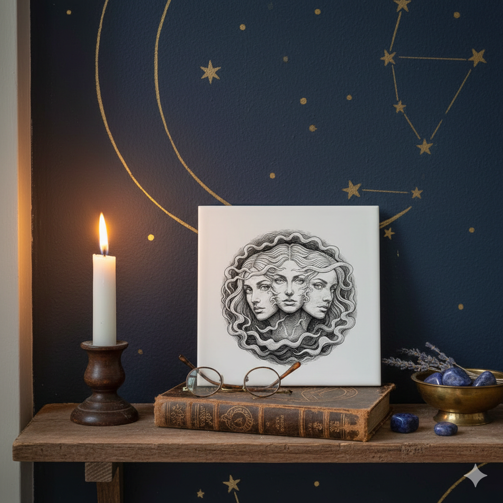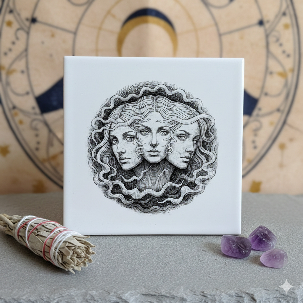 As the debut piece in this ongoing series, we present the Hecate Triple Goddess design. Representing the Maiden, Mother, and Crone, this tile honors the historical guardian of the crossroads and the protective energy associated with her lineage in Old World stories.